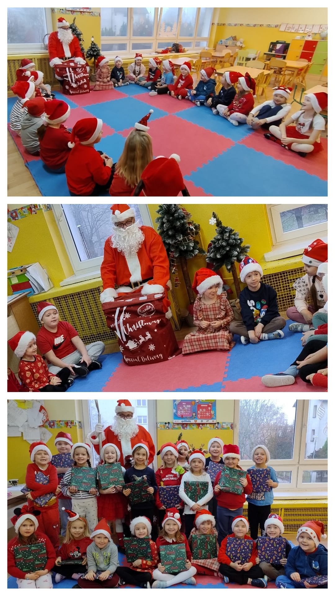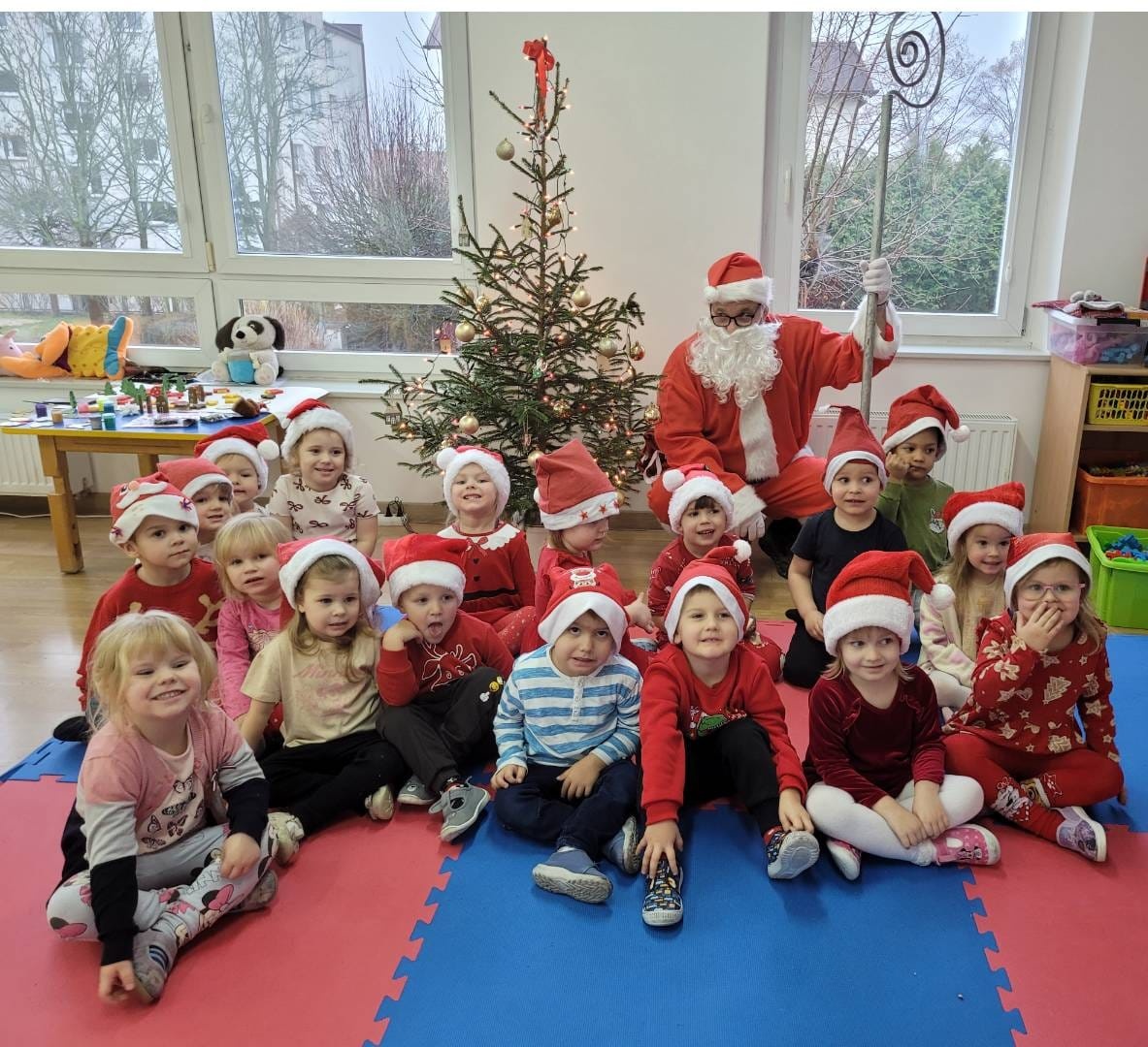 5 grudnia do naszego przedszkola przybył wyjątkowy gość z daleka. Mimo braku śniegu w sercach dzieci zapanowała prawdziwie świąteczna atmosfera. Z niecierpliwością i błyskiem w oczach czekały na magiczne spotkanie z Mikołajem.